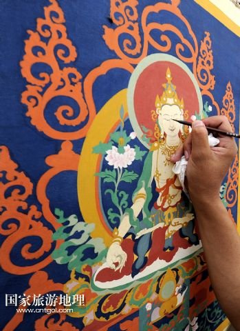 國(guó)家旅游地理 西藏拉薩8月4日訊 8月3日,一名畫師在現(xiàn)場(chǎng)演示唐卡繪制過(guò)程。當(dāng)日,第三屆西藏“唐卡藝術(shù)博覽會(huì)”在拉薩羅布林卡舉行,共展出89名優(yōu)秀畫師的230多幅精品力作。唐卡作為藏族特有的繪畫,有上千年的歷史,已成為藏族文化的“名片”,受到國(guó)內(nèi)外廣泛關(guān)注。 /新華社記者 覺果 攝