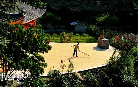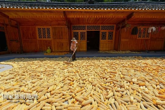 國(guó)家旅游地理 湖北恩施8月22日訊 8月22日,湖北省宣恩縣水田壩村二組農(nóng)民侯慶云在吊腳樓前晾曬玉米。初秋時(shí)節(jié),湖北省恩施土家族苗族自治州宣恩縣農(nóng)民搶抓時(shí)節(jié),對(duì)玉米等農(nóng)作物進(jìn)行收獲晾曬,山鄉(xiāng)家家戶戶忙“曬秋”,到處是一派豐收景象。 /新華社發(fā)(宋文 攝)