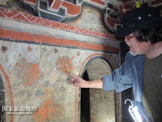 國(guó)家旅游地理 陜西延安9月15日訊 9月14日,考古學(xué)家正在查看畫(huà)像磚墓內(nèi)的壁畫(huà)。經(jīng)過(guò)近三個(gè)月的緊張工作,陜西省考古學(xué)家日前在陜西延安配合基建時(shí),首次對(duì)一座宋金時(shí)期大型畫(huà)像磚墓進(jìn)行了科學(xué)考古發(fā)掘。發(fā)現(xiàn)這座畫(huà)像磚墓竟是仿木磚結(jié)構(gòu)多室墓,對(duì)了解和研究陜北畫(huà)像磚墓形制、建筑結(jié)構(gòu)及其分布與內(nèi)容等,具有重要的標(biāo)尺性意義。 /新華社記者馮國(guó)攝