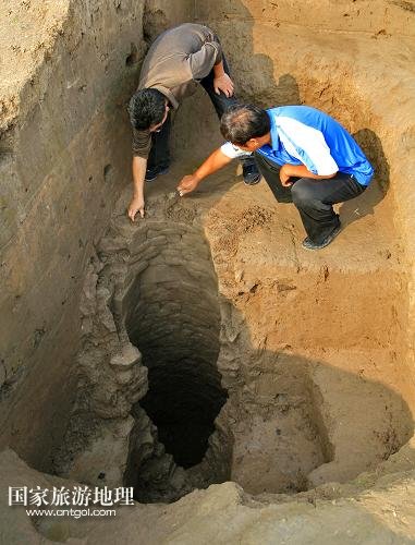 國家旅游地理 河北滄州9月21日訊 9月20日,考古人員在肅寧縣梁村鎮(zhèn)北白寺村附近的古村落遺址發(fā)掘現(xiàn)場工作。近日,南水北調(diào)保滄干渠工程征遷核查期間,在河北省肅寧縣梁村鎮(zhèn)北白寺村發(fā)掘了一處古村落遺址,考古人員進行搶救性發(fā)掘,出土了大批唐宋時期的生活用品、陶瓷碎片及一眼古井。據(jù)介紹,目前考古隊已挖出13個探方,該古村莊遺址的搶救性發(fā)掘工作還將持續(xù)3個月,探方數(shù)量將增加到80多個,面積達2000平方米。該遺址的發(fā)掘,有助于了解當(dāng)?shù)禺?dāng)時的經(jīng)濟狀況和生活狀態(tài)。 /新華社記者 楊世堯 攝