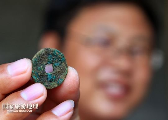 9月20日,考古人員展示在肅寧縣梁村鎮(zhèn)北白寺村附近的古村落遺址出土的銅錢幣。
