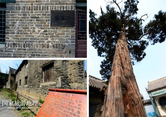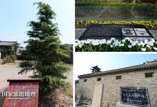 位于臺兒莊古城的臺兒莊大戰(zhàn)指揮所(左上)、民居(左下)和清真寺內(nèi)柏樹(右)上,仍保存著當年臺兒莊大戰(zhàn)中留下來的彈孔(拼版照片,4月8日攝)。