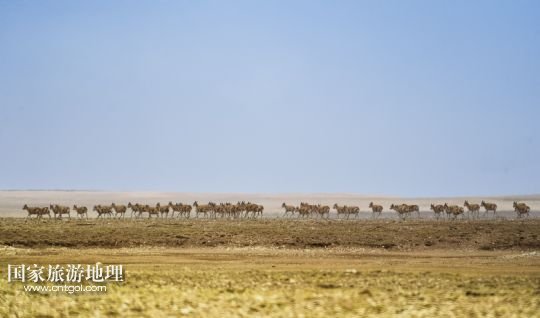 6月4日,可可西里地區(qū)一群藏羚羊在遷徙中。