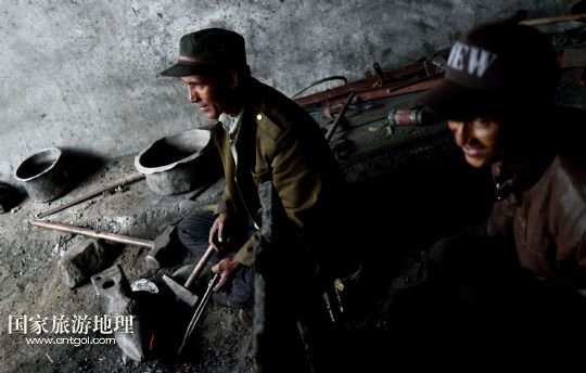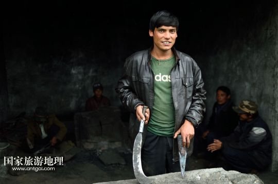 7月17日,扎西頓珠(左)、索朗次仁在達(dá)曼村的鐵匠鋪內(nèi)打鐵。