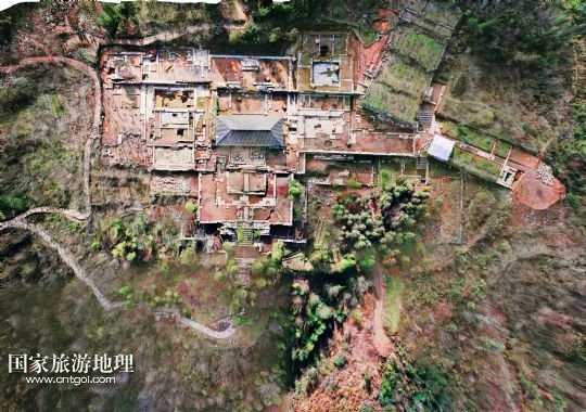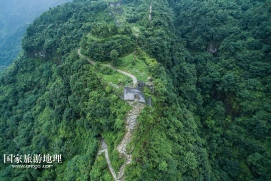 國家旅游地理 德國波恩7月4日訊 從空中看貴州播州海龍屯飛鳳關(guān)(7月3日攝)。海龍屯遺址位于遵義老城北約30里的龍巖山東麓,始建于1257年,毀于1600年。遺址所在山峰相對高度約350米,三面環(huán)水,一面銜山,地勢險要,如今周長約6公里的環(huán)囤城墻尚存,囤東銅柱、鐵柱、飛虎、飛龍、朝天、飛鳳六關(guān),囤西后關(guān)、西關(guān)、萬安三關(guān)依然屹立。囤頂平闊,囤內(nèi)遺有“老王宮”和“新王宮”兩組重要建筑基址,面積均在2萬平方米左右,此外尚有金銀庫、四角亭、采石場、校場壩、環(huán)囤馬道和敵樓等遺跡。