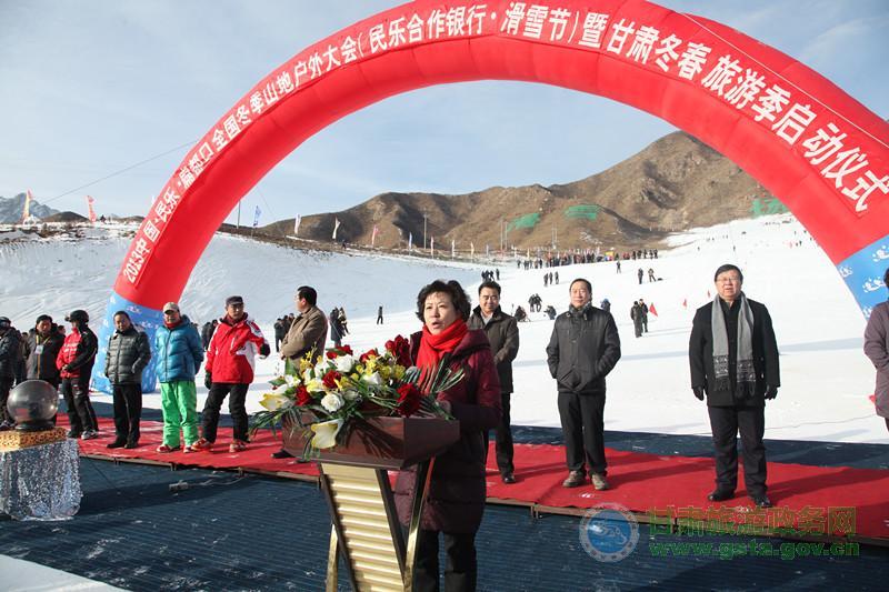 何偉局長用“祁連歡歌迎盛會,冰雪旅游聚英豪”來稱贊本次活動。她在致辭中指出,在張掖扁都口隆重舉行“中國·民樂扁都口全國冬季山地戶外大會暨甘肅省冬春旅游季活動”啟動儀式,這是我省體育、旅游兩個產業(yè)融合發(fā)展的重要舉措,也是我省淡季旅游市場啟動的重要標志。冰雪旅游是品位的追求,戶外運動是勇者的選擇。甘肅旅游資源十分豐富,冬季旅游資源獨具特色。為了給激情飛揚的旅游愛好者獻上豐盛的冬季旅游盛宴,全省各地都在積極謀動。特別是張掖市舉全市之力,精心策劃,全力推動,不僅在大景區(qū)建設等整體旅游工作上走在全省前列,而且在淡季旅游開發(fā)上搞得紅紅火火,做出了示范。在張掖啟動全省“冬春旅游季”活動,就是為了借張掖冬季旅游的火熱勢頭,帶動全省淡季旅游持續(xù)升溫。希望全省旅游系統(tǒng)以本次活動為契機,整合資源,相互借勢,形成合力,共同做熱、做大甘肅冬季旅游市場,使甘肅豐富多彩的冬春旅游資源轉化為旅游發(fā)展新的亮點、經濟增長的新優(yōu)勢。